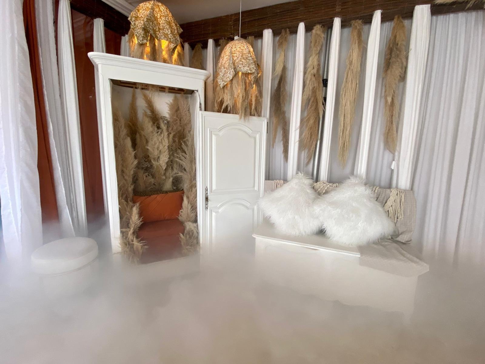 Le décor « Bohême Curl » est une ode à la nature et à la simplicité chic. Ce plateau est conçu pour les amoureux de l’esthétique bohème, avec ses éléments en matières naturelles, ses teintes douces et ses touches florales. Il offre une ambiance chaleureuse et relaxante, idéale pour des séances photo intimistes, des shootings lifestyle ou des mises en scène de produits artisanaux. Ce cadre unique mélange sophistication décontractée et charme rustique, capturant l’essence d’une vie libre et inspirée.